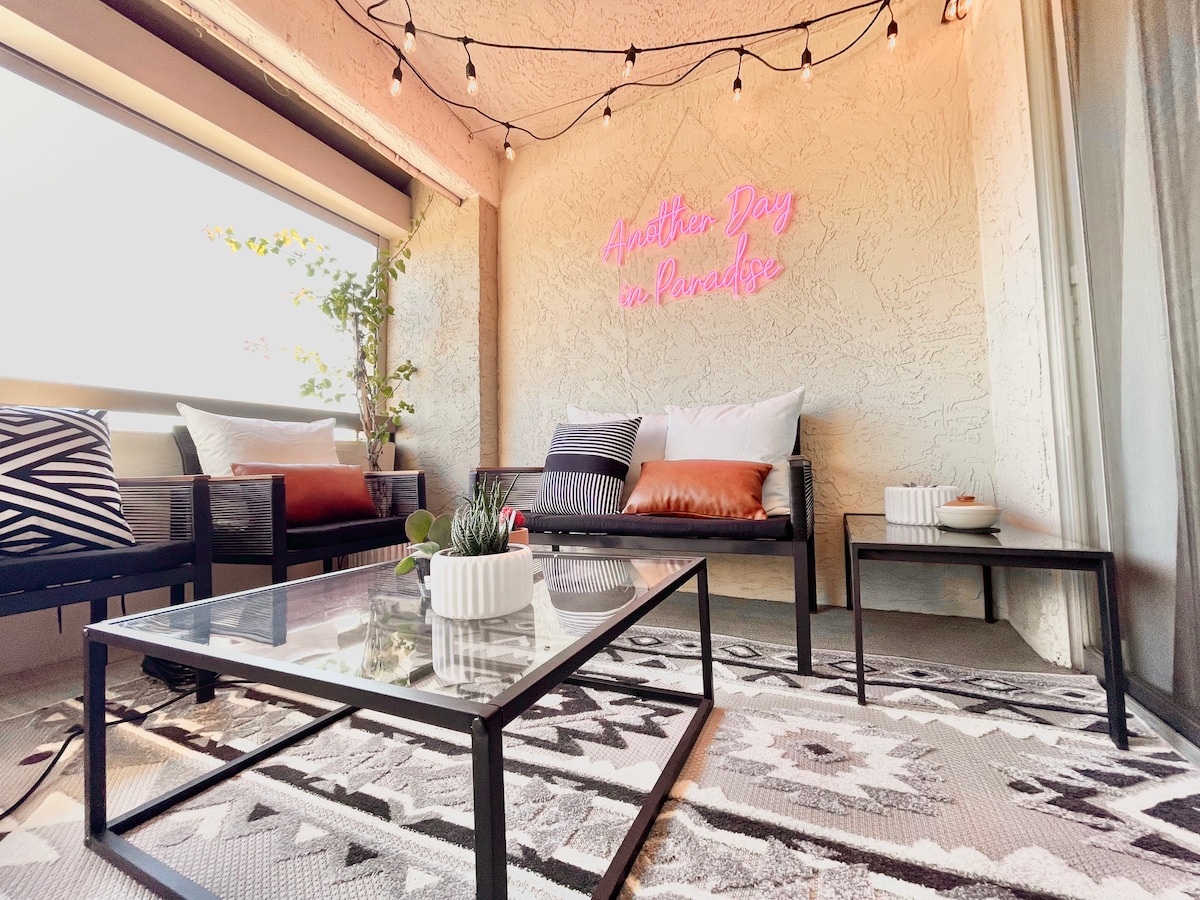 The Space: Welcome to Palm Paradise, your relaxing retreat in the heart of Old Town Scottsdale. renovated in October 2024, this condo blends stylish desert-boho design with all the comforts of home, creating a space that is both beautiful and functional. Unwind on the cozy green corduroy sectional, perfect for napping, or step out onto the private balcony to witness spectacular sunset views over Camelback Mountain. Step into the tranquil bedroom with a king-sized bed and high quality linens.