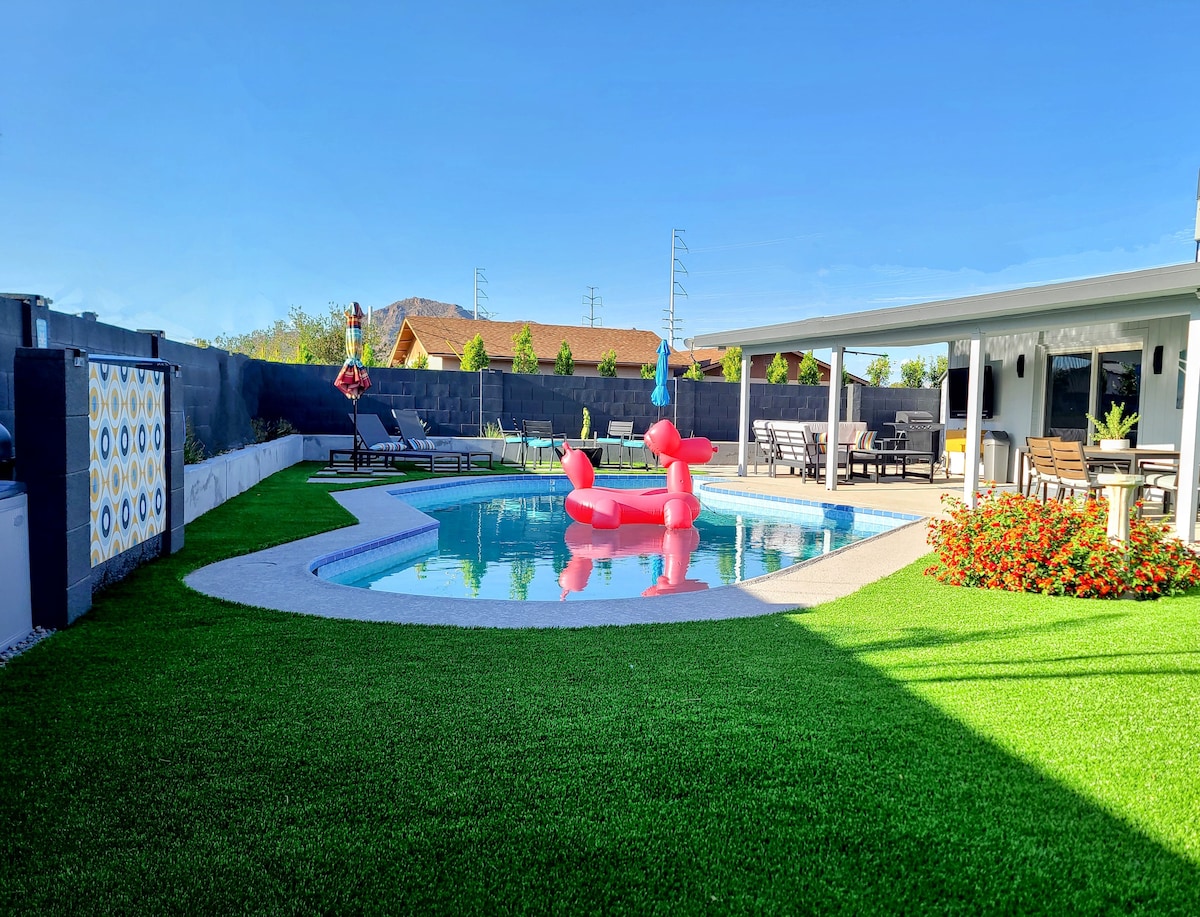 New HOUSE! March 2024! FREE HEATED POOLIN WINTER AND HOT TUB + ZERO CLEANING CHORES! DON'T PAY FOR POOL HEAT AT SOMEONE ELSES AIRBNB! - BRAND NEW Beautiful remodeled 3 bedroom house with resort style backyard, only minutes from Old Town Scottsdale! Free Heated Pool, Hot Tub, Fire Pit, Mini Golf, Ping Pong, Giant Chess, + fastest wifi and smart tv's! The house is fully stocked with a complementary coffee bar, outdoor bbq, and the most beautiful turf for the whole family to enjoy! CABLE TVS !