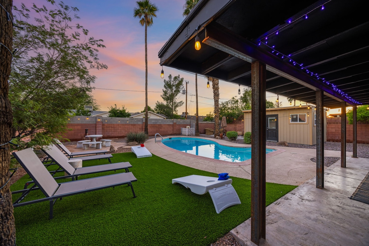 Want to be in the heart of Old Town Scottsdale? Casa De Azul is the perfect home for large groups & families. Additional $50/day to heat the pool. You'll be a quick 3-minute ride to the nightlife, sporting events, shopping, and everything Old Town Scottsdale has to offer. This newly remodeled vacation home is the ultimate desert oasis with loads of smart home capabilities. Family friendly - Available upon request - Booster, Playpen, Kids Dinnerware and toys for kids 6 mon-4 yrs.