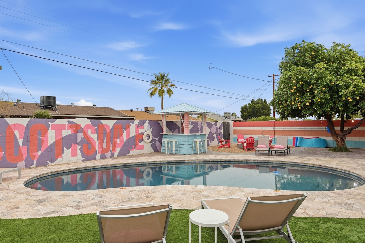 斯科茨代尔度假屋、恒温泳池和西部壁画!
