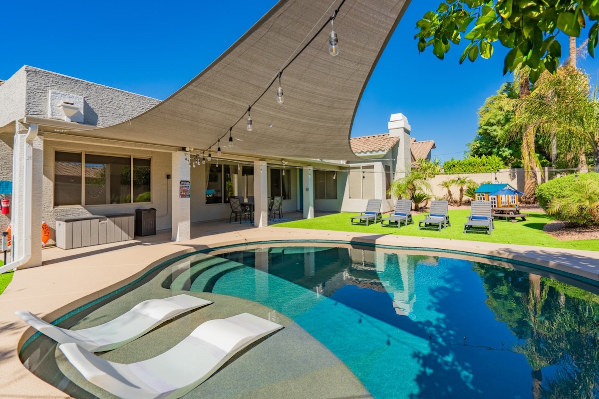 New HOUSE! March 2024! FREE HEATED POOLIN WINTER AND HOT TUB + ZERO CLEANING CHORES! DON'T PAY FOR POOL HEAT AT SOMEONE ELSES AIRBNB! - BRAND NEW Beautiful remodeled 3 bedroom house with resort style backyard, only minutes from Old Town Scottsdale! Free Heated Pool, Hot Tub, Fire Pit, Mini Golf, Ping Pong, Giant Chess, + fastest wifi and smart tv's! The house is fully stocked with a complementary coffee bar, outdoor bbq, and the most beautiful turf for the whole family to enjoy! CABLE TVS !