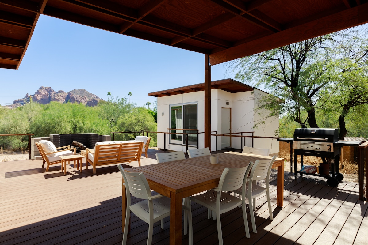 * Private, bright guesthouse immersed in a peaceful oasis of lush landscaping. The guesthouse is right in front of our swimming pool. * Fully remodeled: Kitchen, TV, Wifi, Nespresso & more. * Central location: 10 mins from Old Town Scottsdale, ASU, Sky Harbor Airport, Spring Training & more. Check out my profile for two Luxury B&B suite listings in the main house. Private bedroom & bath, full access to living areas + breakfast. Ask about photoshoots or events across the various property areas.