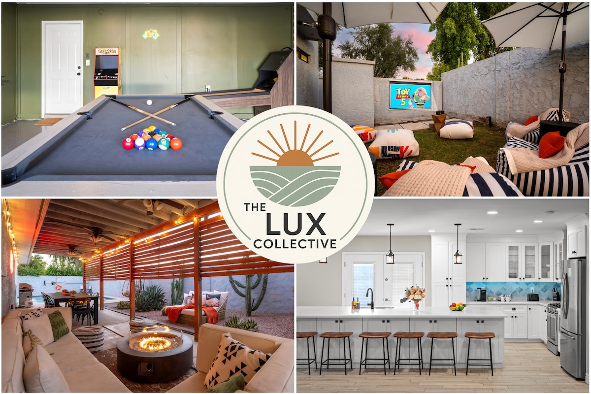 New Everything! Welcome to your private resort in the heart of Old Town Scottsdale-packed with luxe amenities for an unforgettable stay: 🔥 Heated pool*+7-person hot tub w/121 jets 🧊 Cold plunge+6-person barrel sauna 🌇 Rooftop lounge w/fire pit, fire-table dining+7’ bar w/stools 🏌️♂️ Private 4-hole putting course 🌴 Fully fenced outdoor oasis 🍽 Alfresco dining, gas BBQ+fire pit 🎥 100” outdoor movie screen 🕹️ Game room w/arcades, mini pool table & foosball *Pool heating, see other details