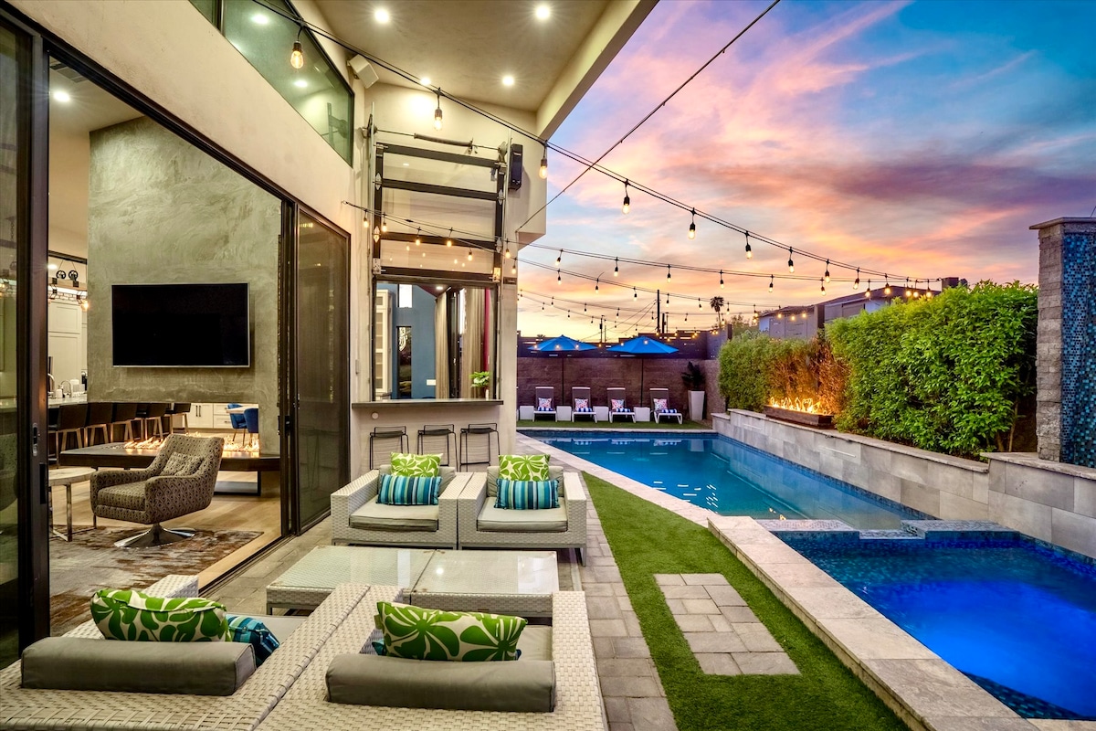 ➳ Walk to the heart of Old Town in 2 minutes (Seriously, as good as it gets) ➳ Sprawling backyard with heated pool and spacious hot tub ➳ Endless outdoor living space with fire pit, propane BBQ grill and dining area ➳ Two generous master suites and three bathrooms ➳ Collapsible wall in the living room for indoor-outdoor living Looking for something a little different? I’ve got 8 more top-rated Scottsdale homes, all 5 minutes or less from Old Town. Click my host profile to explore!