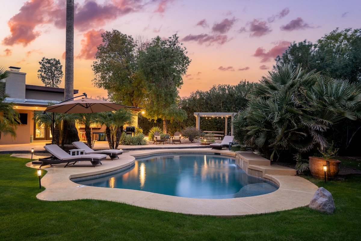 ➳ Walk to the heart of Old Town in 2 minutes (Seriously, as good as it gets) ➳ Sprawling backyard with heated pool and spacious hot tub ➳ Endless outdoor living space with fire pit, propane BBQ grill and dining area ➳ Two generous master suites and three bathrooms ➳ Collapsible wall in the living room for indoor-outdoor living Looking for something a little different? I’ve got 8 more top-rated Scottsdale homes, all 5 minutes or less from Old Town. Click my host profile to explore!