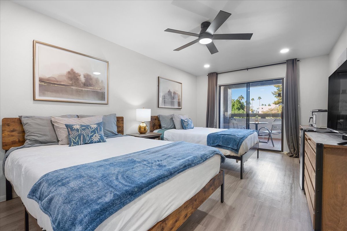 This 2-bed suite is located across the street from Rockies/Dbacks Spring Training and is located between Old Town, Talking Stick Resort, Waste Management Open and everything Scottsdale has to offer! The suite is all your own, including a private balcony to enjoy morning coffee! Comfortably sleeps 2, but can sleep 4. Designed for an affordable solution to traveling in Scottsdale. We have high speed WIFI and Cable TV. TPT# 21381976 SLS# 2022816