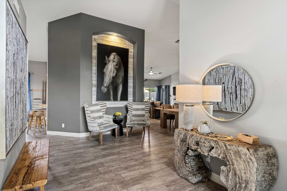 Welcome to The Scottsdale Clubhouse, a one-of-a-kind vacation rental in the heart of Scottsdale. This brand-new luxury retreat blends resort-style amenities with all the comforts of home. Designed for relaxation, entertainment, and unforgettable gatherings, the home is just minutes from Scottsdale’s top golf courses, shopping, dining, and nightlife.