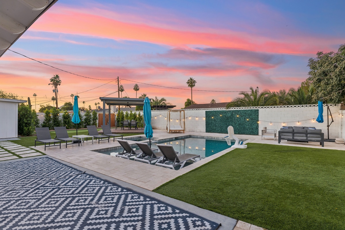 Ideal location & fabulous pool in this roomy sunlit retreat with AC! Large pool/spa/kitchen. Great yard and huge covered patio. Cheap uber to Old Town, attractions, nightlife, dining, and unique shops. Walkable to grocery store. Fast Wi-Fi speed! Stream favorite movies/sports on the 75" smart TV's. Enhance your stay with the optional heated spa ($50/day) or the heated pool + spa option ($100/day). Valid ID requested upon booking. Reserve now! TPT license #21511410 Scottsdale License #2028375.