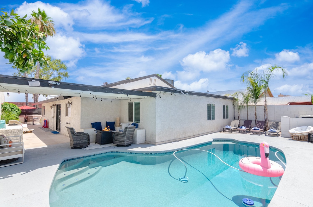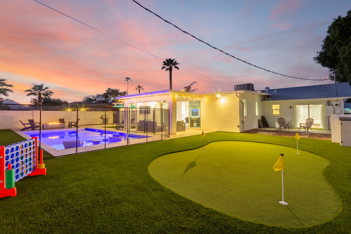 Discover the ultimate Scottsdale retreat at Monte Vista, where luxury and comfort combine to create an unforgettable experience. Impeccably decorated with hardwood floors and heavenly beds, our home accommodates up to 10 guests and offers a backyard oasis complete with a heated pool, firepit, and backyard games. Enjoy easy access to Old Town with a free shuttle just a block away. Come see why Monte Vista is one of Scottsdale's highest-rated homes and make your dream vacation a reality!