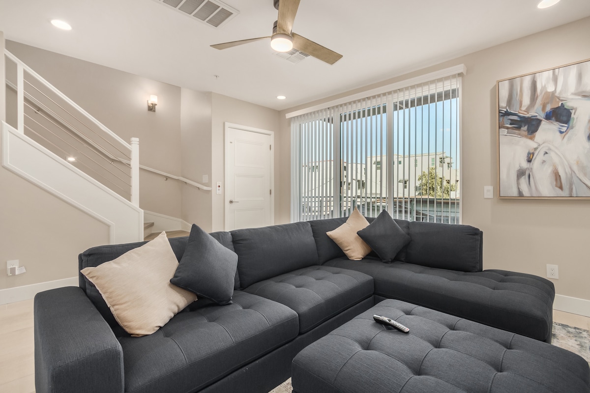 Discover the perfect luxury group getaway in modern Old Town Scottsdale. ★ 3 Modern Bedrooms | 2 Full Bathrooms | Accommodates 10 Guests ★ Top Features: Shuffleboard • Foosball Table • Workspace Area • Classic Games ★ Outdoor Entertaining: Large Patio • BBQ Grill • Al Fresco Dining ★ Open Living: Modern Kitchen • Fast WiFi | smart TVs • High-Chair | Pack and Play • Dedicated Workspace | In-Unit Laundry • Prime Location | Luxury Linens • Easy Parking