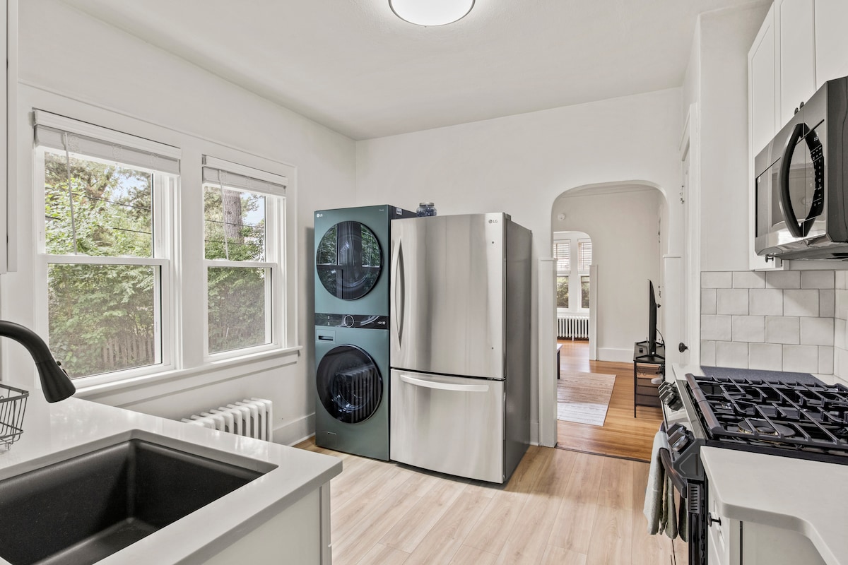 Coming to visit family or for work? Centrally located house with the charm of the 1930s and the comforts of today. Beautiful hardwood floors and original gumwood trim. New queen-sized beds, linens, TVs, and appliances. This location is amazing. Plenty of space to get work done or just relax. High-speed fiber-optic internet. There is a washer and dryer available with detergent and fabric softener. Lots of original photography and art throughout the house. Off-street parking.