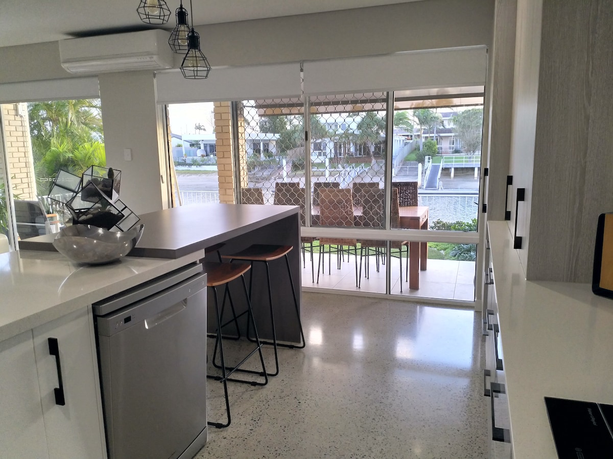 Kick back and relax in this calm, stylish space. Located right on the water of Mooloolaba's canals, our first floor apartment is positioned perfectly to catch all the best cool breezes right off the water while you sit back and watch the fish jump from the clear waters of the canal view. Fully equipped kitchen, dining and living, a full laundry and everything else you need as if you were right at home. Easy walk to the best beaches and what will soon become all your favourite restaurants.