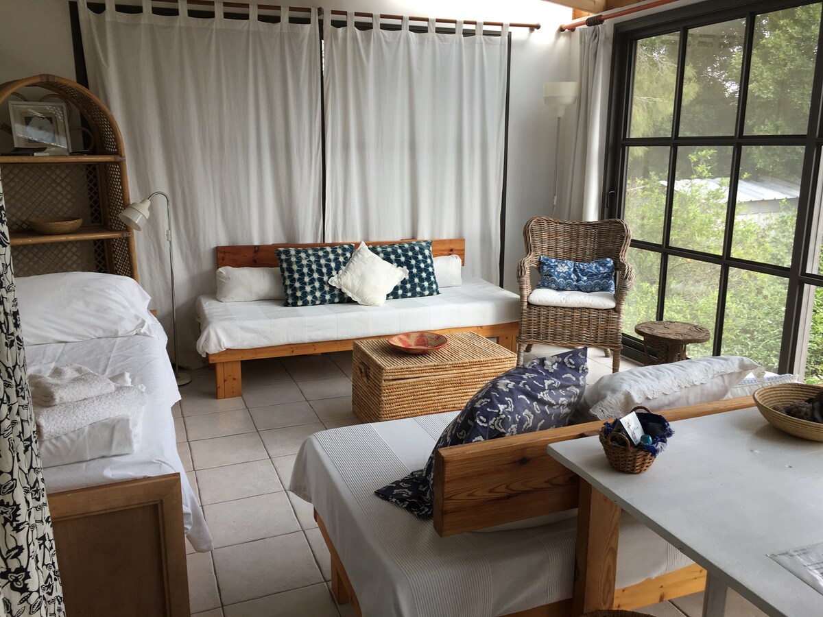Soft sounds of nature, green mountains and caressing wind. It's built as a large open space, with high wooden ceiling and wrapped in windows to the garden. The house is designed in an eclectic style and every detail in it carefully selected. you can cook in a well-equipped kitchen, and dine around a dining table to the sounds of music you like by a professional sound system.facing a mountain view garden, enjoy a wading pool and a magical seating, which are scattered under the shade of trees.