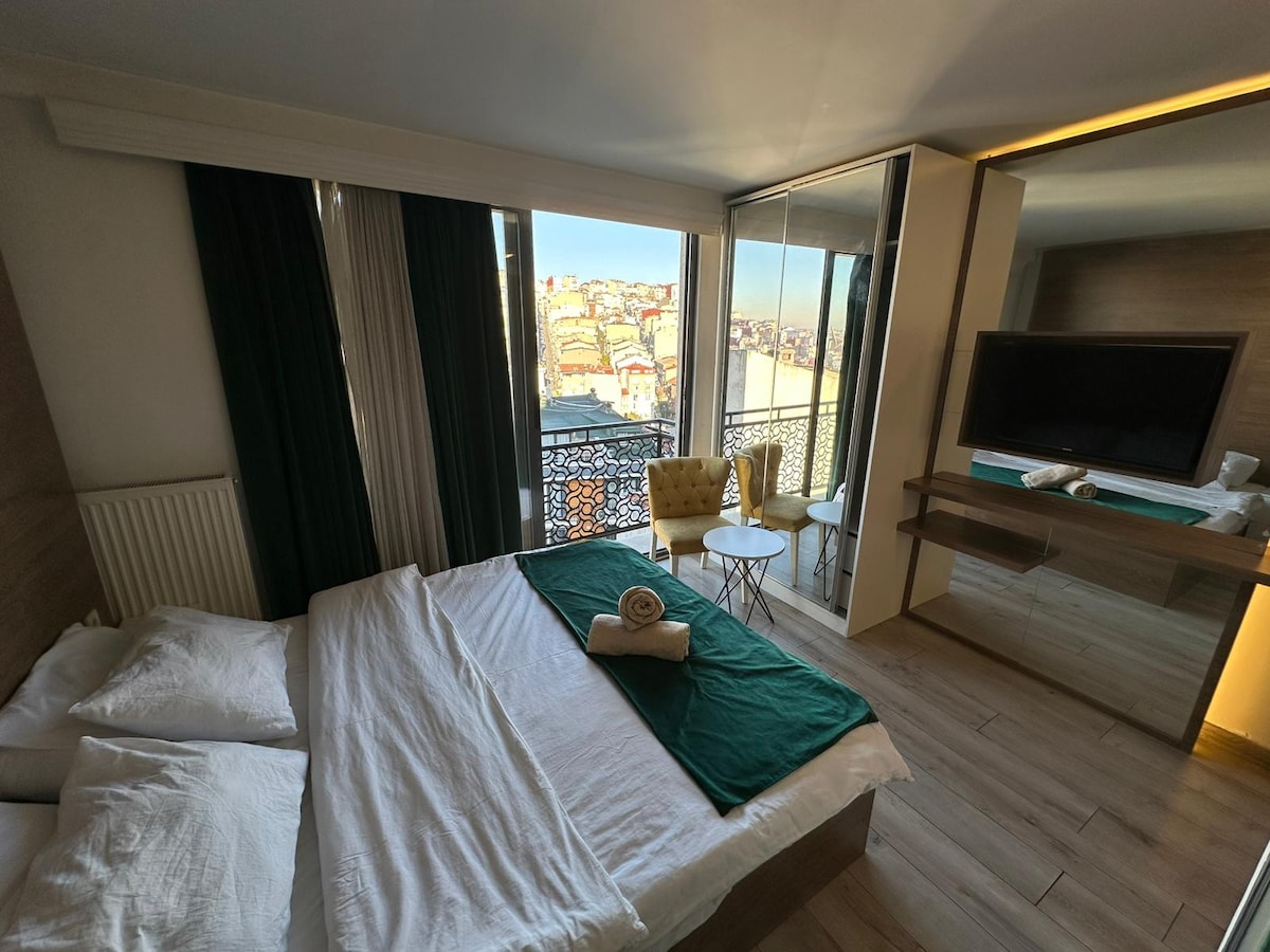 Our newly furnished hotel is at Aksaray Old Town. There is available elevator. We serve open buffet breakfast on top floor with a small sea view free of charge to all our guests. We provide in the rooms a kettle, a mini fridge, a hair dryer etc.. Its located in heart of the city. Aksaray tram is 50 meters. Yenikapi Metro and Marmaray stations are 500 meters away. Easy to find around some supermarkets, cafes, local restaurants, local shops, etc..