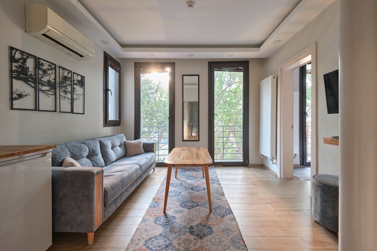 Experience the vibrant heart of Istanbul with a stay in this charming Airbnb flat located on Mis Street, a lively street with restaurants and bars just a few meters away from the famous Istiklal Street in Taksim. This cozy one bedroom flat features a private terrace that's perfect for enjoying the warm Turkish sun. Also a comfortable living room with AC, a kitchen with a mini fridge, a washing machine, coffee machine, and a barbeque on the terrace, as well as a Smart TV for your entertainment.