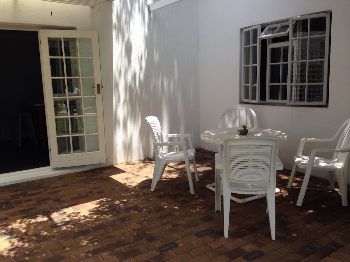 Share a bottle of wine at sunset on a private patio in the shade of a retractable awning. A casual seaside ambiance is created indoors by softwood floors, inviting couches, and fresh blue-and-white decor. Located in quiet street in Sea Point, a Cosmopolitan suburb on the Atlantic seaboard. Easy walking distance to beaches, swimming pool, promenade where you can walk, jog, sight see, ride bikes, or sit and enjoy a breakfast or coffee at nearby restaurants.