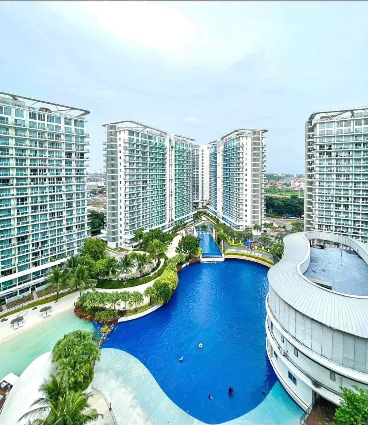 BEACH INSPIRED STAYCATION AMENITIES: • Beach pool • Wave pool • Paris beach club • Sky view • Ibiza beach bar • Beach boleyball (bring your own ball) • The sands bar • Convenience stores INCLUSIONS: • 50'' Smart TV with Netflix and Youtube • Airconditioned room • Card games/board games • Queen bed and sofa bed • Extra blanket and pillows • Balcony with pool & amenities view • Dining set and complete set of cookware • Microwave and Refrigerator • Bath essentials • Wifi and landline