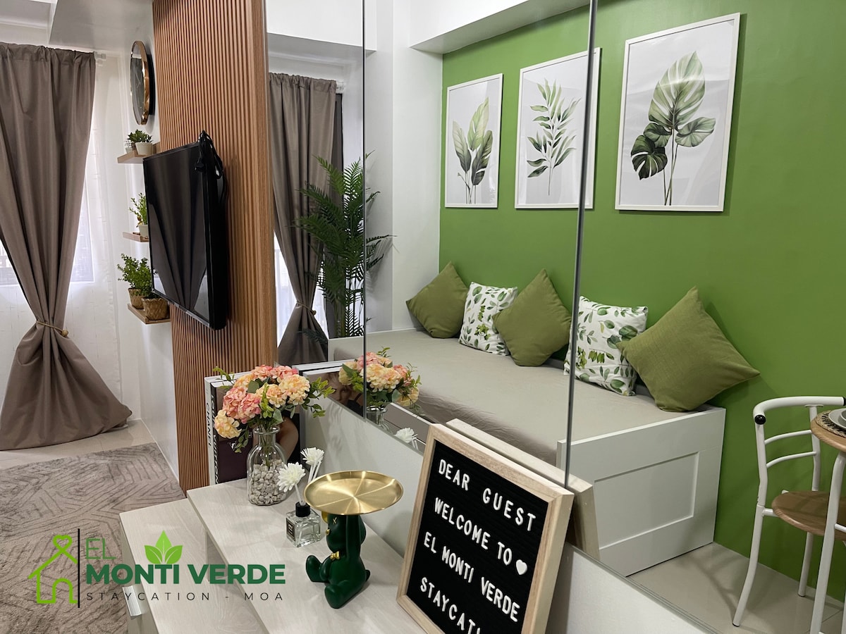 Cozy 1BR Condo w/ Balcony | 200Mbps Wi-Fi | Resort-Style Living Stay in a fully furnished, air-conditioned 26 sqm condo with a private balcony—offering comfort, privacy, and a homey feel at a great rate. Enjoy 200Mbps high-speed internet, perfect for remote work, video calls, streaming, and online tasks. Located in a Mall of Asia CBD with a resort-style vibe, this space is ideal for couples, solo travelers (on leisure or business), or small families looking for a relaxing yet productive stay.