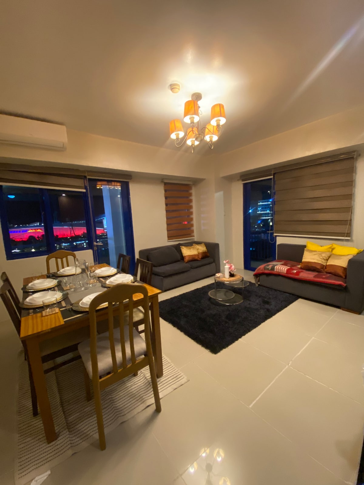 Bring the whole family to this great place with lots of room for fun. Have fun watching the fireworks in the veranda, 2 bedrooms and 2 cr there’s a heater for shower smart tv with netflix and other app to enjoy to watch 5 mins walk to mall of asia 7 mins walk to ikea and Moa Arena 15 mins ride to SOLAIRE, city of dreams and other hotels near terminal 1, 2 and 3 complimentary wine during holidays