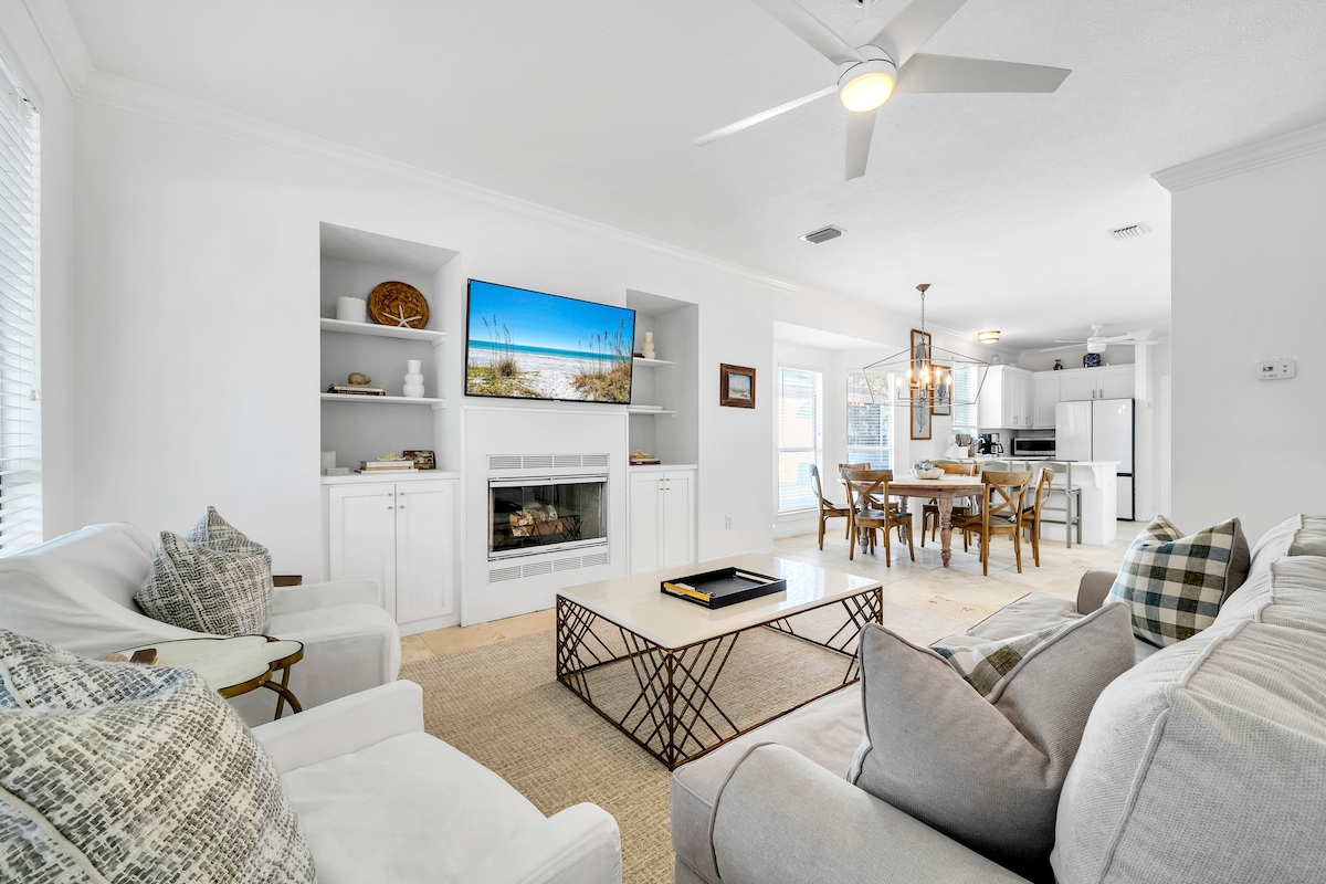 Completely renovated!!! This 2 bedroom + sleeper sofa / 2.5 bath townhouse located on 30A & nestled between Rosemary Beach & Seaside. It has an open floor plan where you can prepare a meal while enjoying the company of friends. Unwind on the white sandy beach just steps away from unit, down the private walkover.