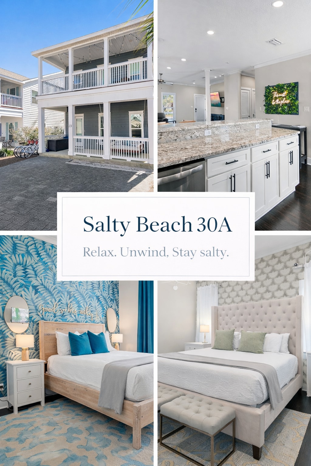 Welcome to Salty Beach 30A! Enjoy the best of 30A without the traffic and crowds. Our home sits just across Hwy 98 at the start of 30A, and the new pedestrian underpass makes it easy to bike or walk into Rosemary Beach. 0.5 mi to Rosemary Beach 0.7 mi to public beach access 0.1 mi to 30Avenue shops & dining Our home is thoughtfully stocked for families but perfect for girls trips or couples getaways too. Pack less and enjoy everything 30A has to offer!