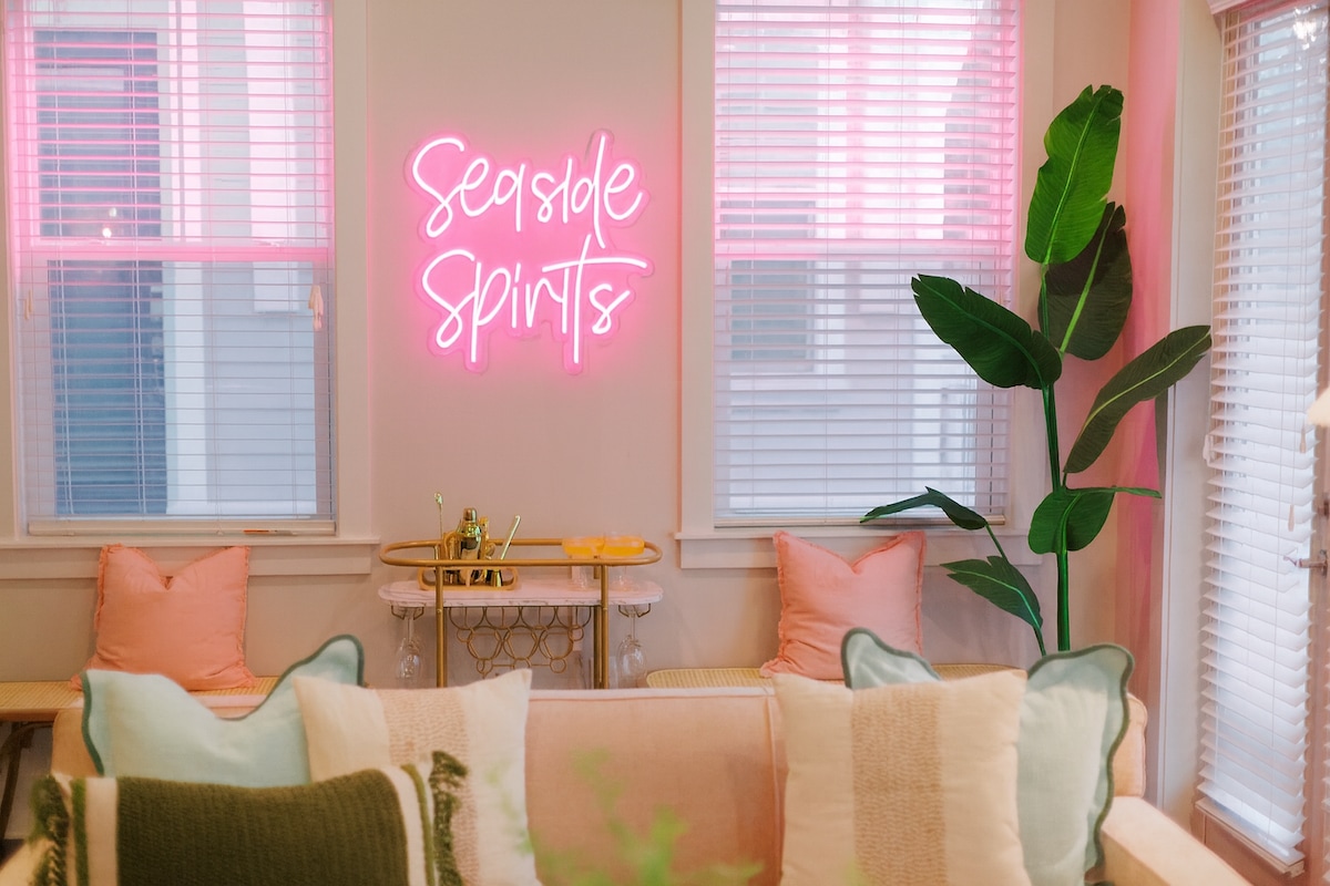 @SandyCheeks30A is a 5 minute walk to the beach or take the 6 seater Golf cart. 4 bicycles and Large heated private pool surrounded by 7 large palm trees. About 1 mile (5 mins) to Seaside. Perfect location with walkability to great restaurants, Farmers markets, Shops, yoga studio & within 15 mins to Rosemary Beach & Grayton Beach, plenty of great shops, food, and a fun Beachy aesthetic. We hope you enjoy your getaway to the beautiful emerald coast and find it a new vaca home away from home!