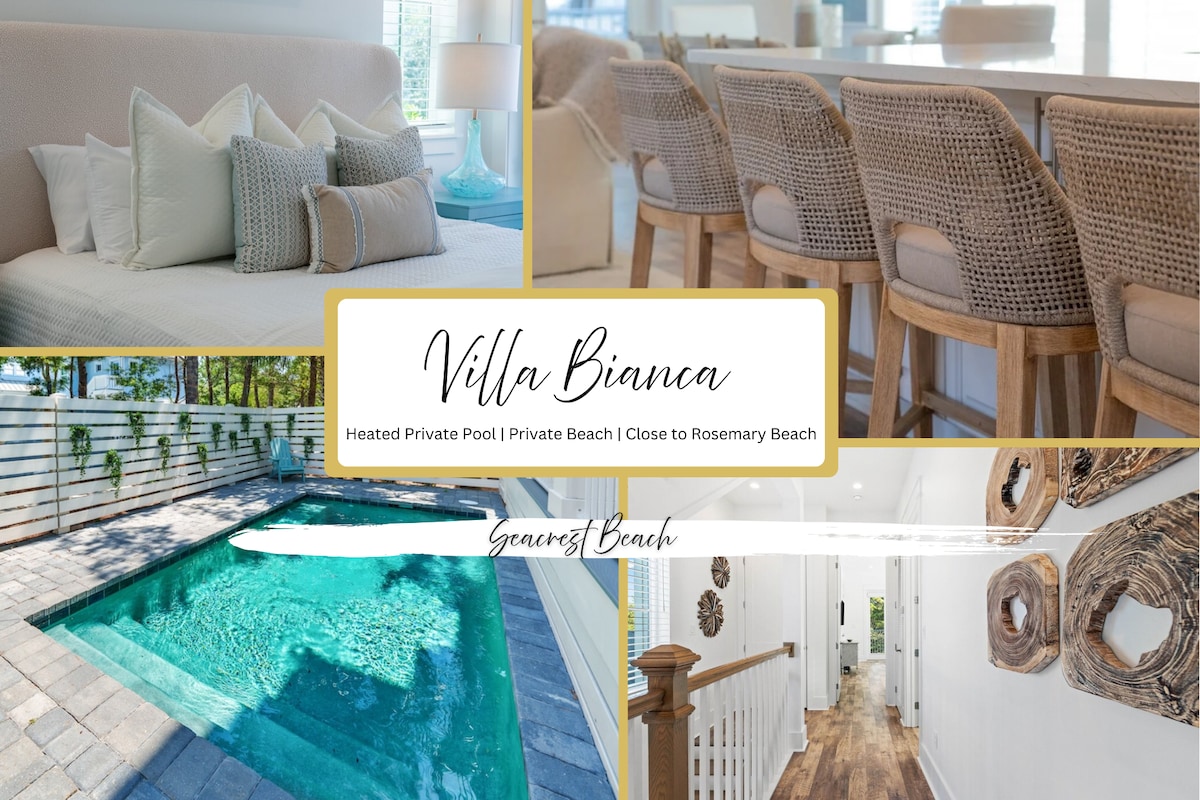 6-seater LSV/golf cart + 4 bikes included!! GORGEOUS brand new beach home, 4 bedrooms + 5.5 bathrooms! Just steps to Seagrove Beach! Enjoy a heated saltwater pool, hot tub, cold plunge, fire pit, corn hole, a summer kitchen, and multiple decks! A first-floor master suite, a bunk room, + laundry rooms on the 1st AND 2nd floors make this home perfect for families and large groups! Great location for beach access, close to shopping and dining along 30A! Your perfect coastal getaway awaits!