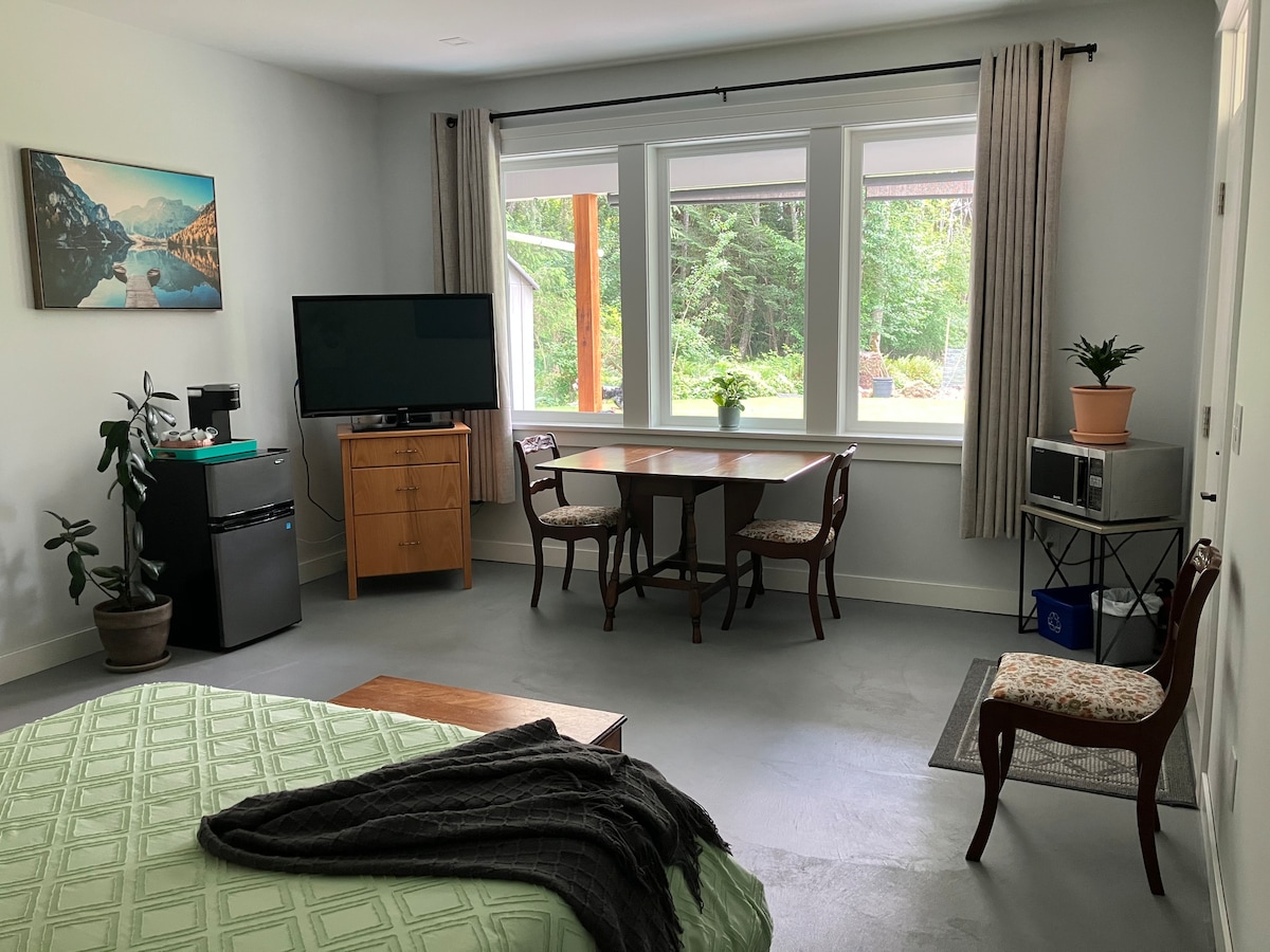 *Newly renovated and quiet suite in a separate building from our house. 5 min drive to Comox airport and Powell River ferry, 25-30 min drive to Mount Washington Resort* Nestled in a beautiful and private forest setting, yet only 7 minutes from downtown Comox, our carriage suite offers a peaceful and comfortable getaway in the trees. Yoga studio on the property with weekly classes! *Please let us know when you book if you are bringing pets, or more than 1 vehicle*