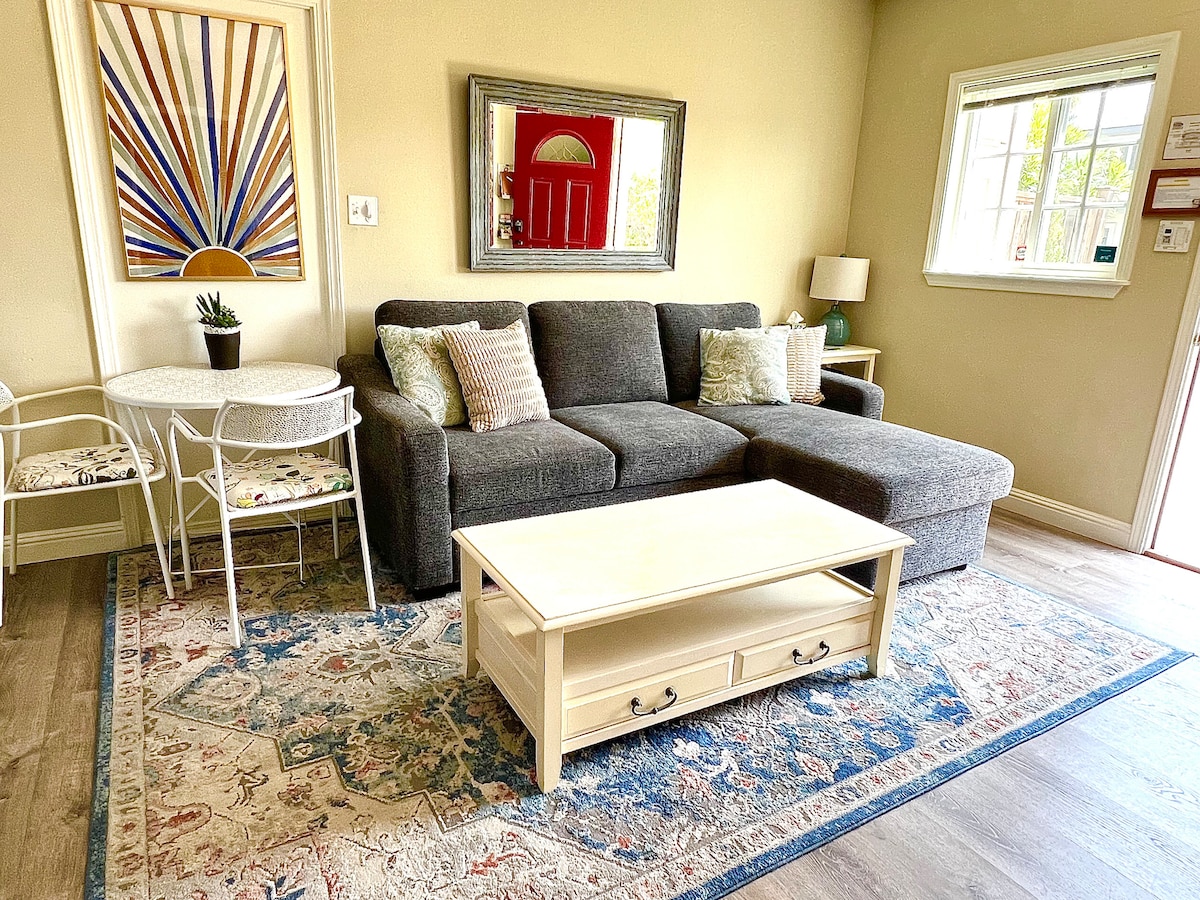 You will love our sunny private flat recently updated and only 1 mile from the Pacific Ocean! Privacy is guaranteed with a separate entrance and is conveniently located just minutes from many outdoor recreational activities and scenic coastline. We love adding to our space special features, with the latest addition being our own Mini-Golf hole that is yours to enjoy right off your patio space! City short-term rental permit #0081. Hope to see you soon...