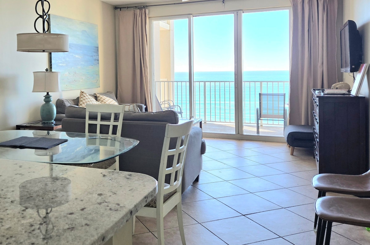 Come enjoy breathtaking views of the Gulf of Mexico and beautiful sunsets in our modern and family-friendly home away from home. Our home on the 8th floor is perfect for beach-loving families, couples, retirees and travelers from around the world. We are about a 5-6 minute walk from the fabulous white sand beach and the beautiful blue / green waters of the Gulf of Mexico. Our property has been cleaned, sanitized & disinfected using CDC COVID-19 recommendations prior to your arrival.