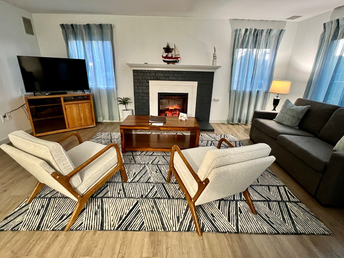Park once & explore the town on foot! This room sleeps 8. The perfect place to stay with family or friends. 1 block to the beach. Living room w/ fireplace & a full kitchen. Sofa in the living room is a Queen sofa sleeper. Bedroom downstairs has a Queen bed. Bedroom upstairs has a Queen bed, & there are 2 twin beds in the landing area near the top of the stairs. Outdoor areas too. Tub/shower in the bathroom. 1 reserved parking spot, more can be found on the street. Cannon Beach Hotels