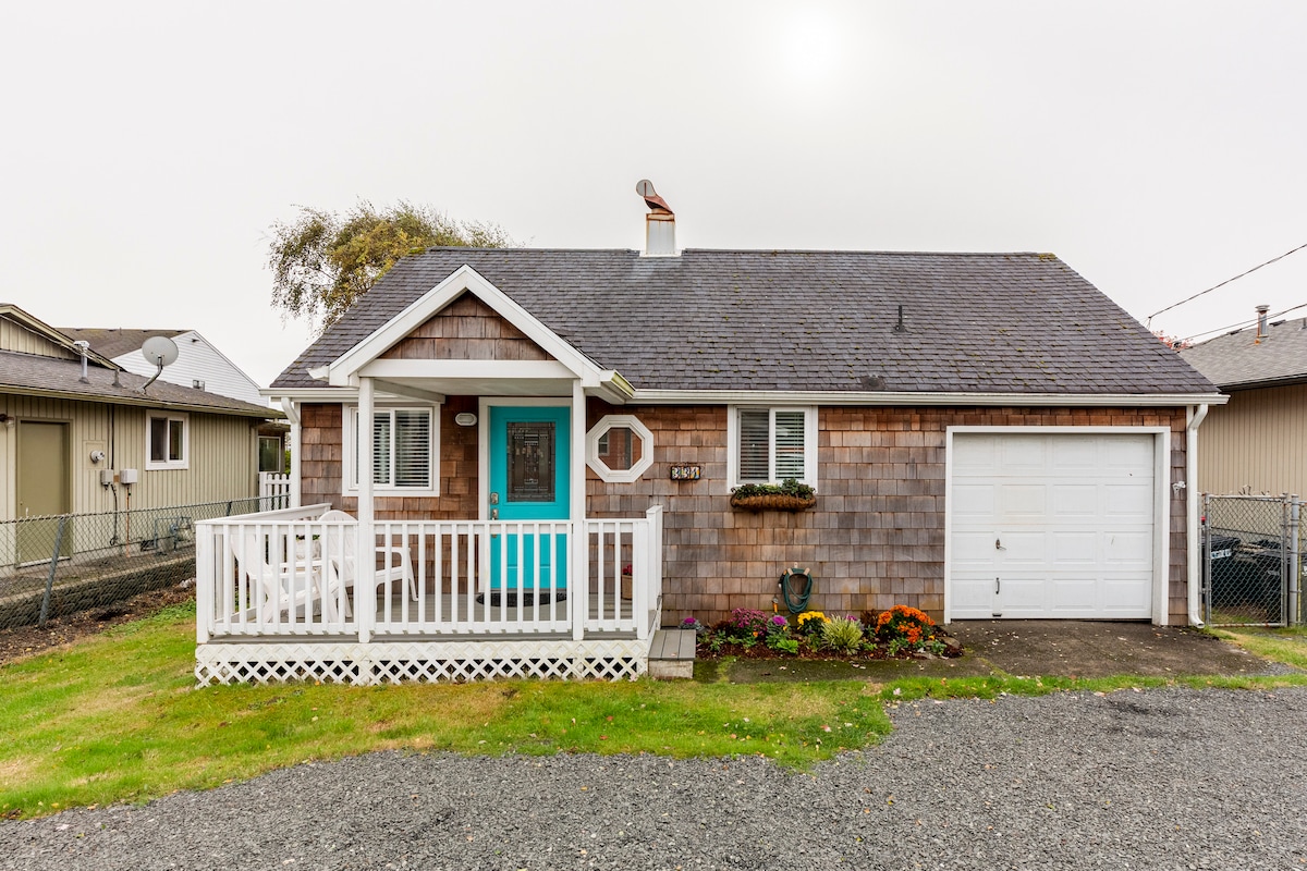 The Cottage sits across from youngs bay partial view changing with each season own large yard Bbq fire pit, tree swing closer to main road potential for noise once enter it’s much quieter French doors open to a spacious living room extra sleeping TV Roku remote heat pump a/c fan games toys record player fully stocked kitchen Coffee tea dining, laundry soap provided Private bedroom pack-play nice bathroom hot shower & good pressure amenities no tub Ample parking 6 min drive to town amazing views