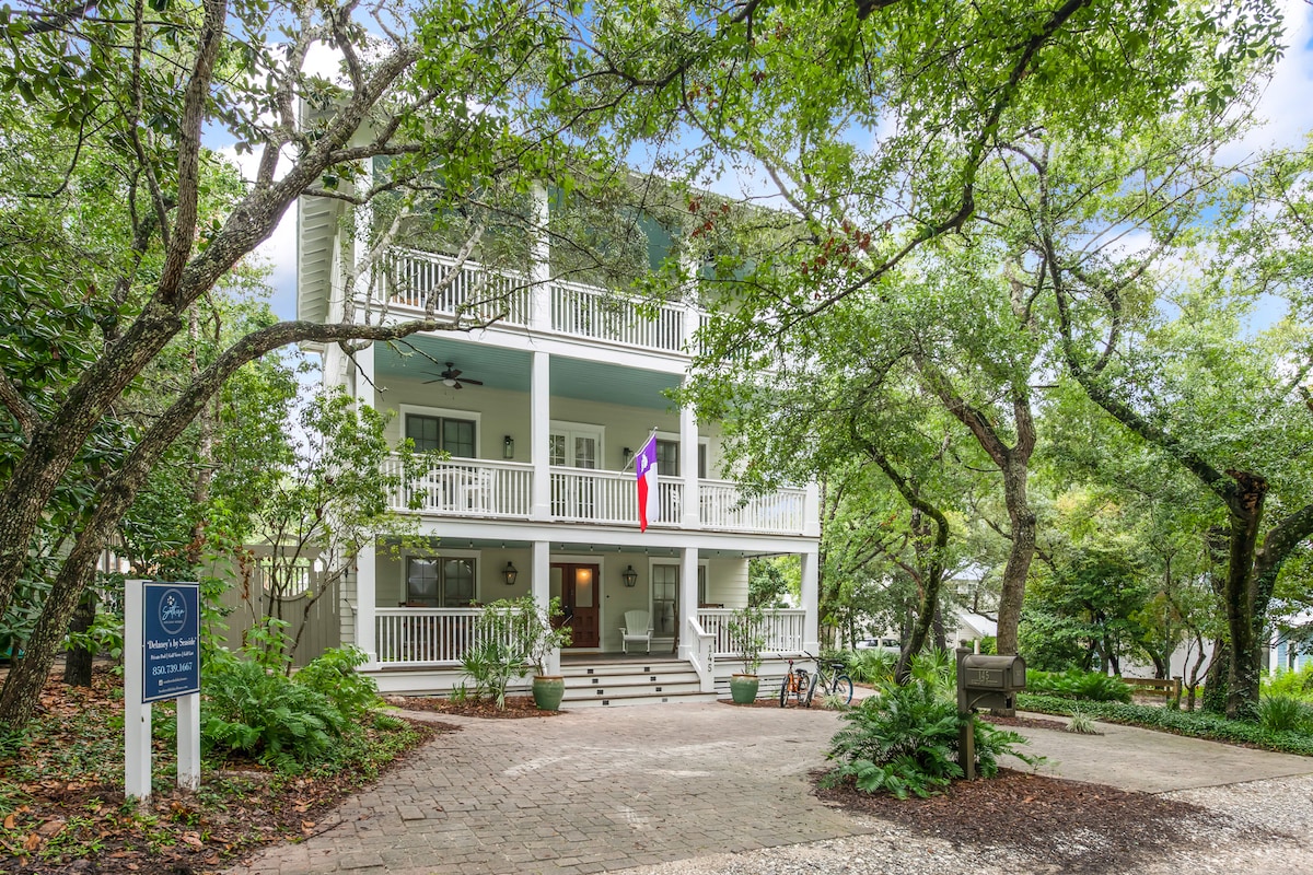 Sleeps 18! 6-seater LSV/golf cart & 6 bikes included! Great 6-bedroom home LESS THAN A BLOCK TO DEDICATED BEACH ACCESS! This stunning home boasts a private heated pool, fire pit, multiple expansive porches (top one with GULF VIEWS), BBQ grill, screened-in back porch with dining table, large dining room with fireplace, cozy coastal furnishings, and more! Located in the epicenter of Old Seagrove walking distance to the beach, Seaside, great restaurants, shopping, Publix and more!
