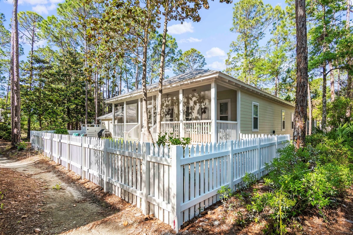 A private oasis situated among lush vegetation and gorgeous oak trees, this property is steps away from the bay and just a 5 minute car ride to all the magic of 30A and beach access. Unique finishes include a heated saltwater pool for those perfect nights in, and 2 picturesque outdoor showers. The main house features 3 beds/3 baths while the guest house features a bunk room with a full bath. This is truly a nature lovers’ paradise to relax in while enjoying all that 30A has to offer.