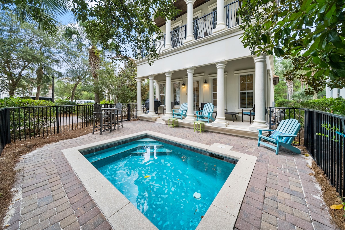 "Serendipity in Seagrove" is located on charming and secluded Barcelona Avenue and nestled within the whimsical tree canopy that steals the hearts of those who visit Seagrove. You'll be incredibly close to all the action and enjoyment of the beach, 30A and Seaside, yet privacy is yours the moment you need it. It’s the best of both worlds. You have access to our private pool with an option to be heated during the cooler months. We do ask a fee of $30 per day to offset our additional costs.