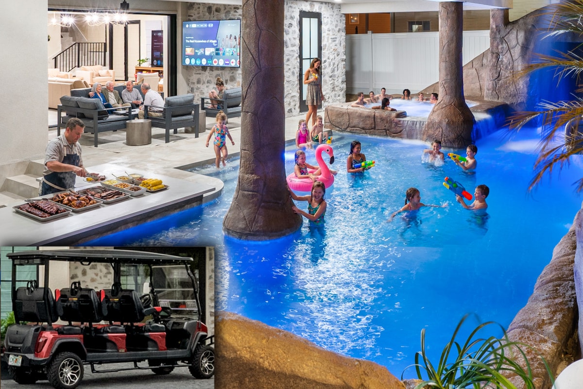 可入住26人,盐水水疗/泳池,步行2分钟即可抵达海滩,高尔夫球车