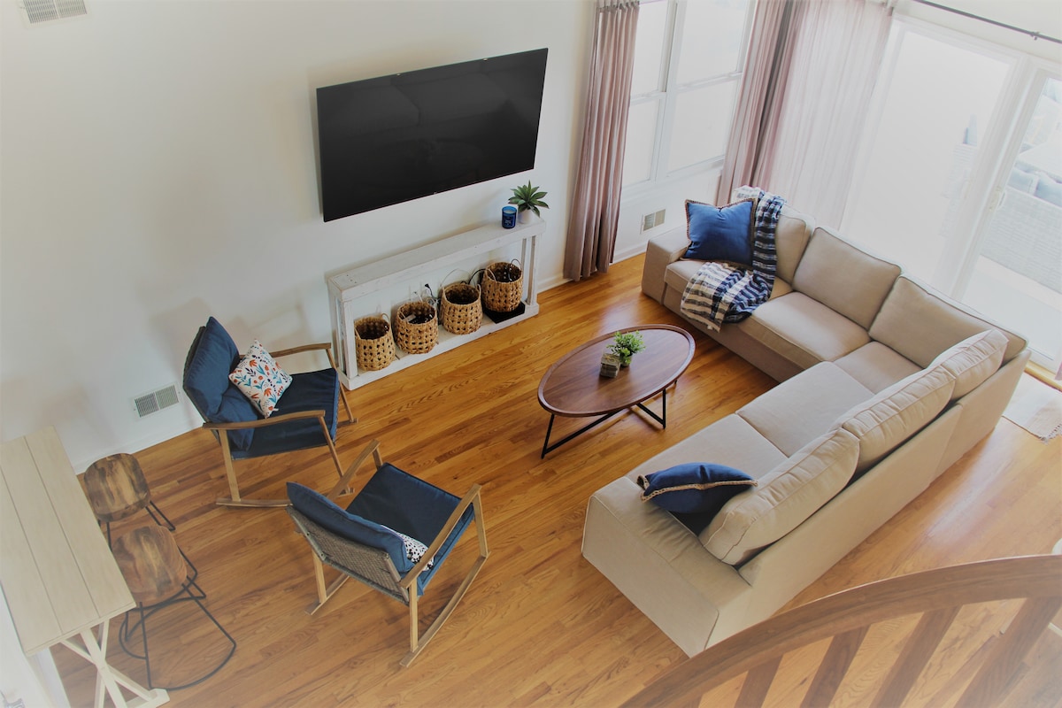 Unit #2 | cozy, modern, & luxurious newly renovated upstairs apt, perfect for families & friends.Located just 1.5 blks from the boardwalk&beach (about a 5-minute walk). Includes off-street parking for 1 car plus 1 parking pass.Features all-new stainless-steel appliances, a fully equipped kitchen with dishwasher,washer & dryer,smart TVs,USB/USB-C outlets, free Wi-Fi, dedicated workspace, all linens & towels, plus 6 beach badges, 6 beach towels, a beach wagon, & 6 beach chairs + outdoor fire pit