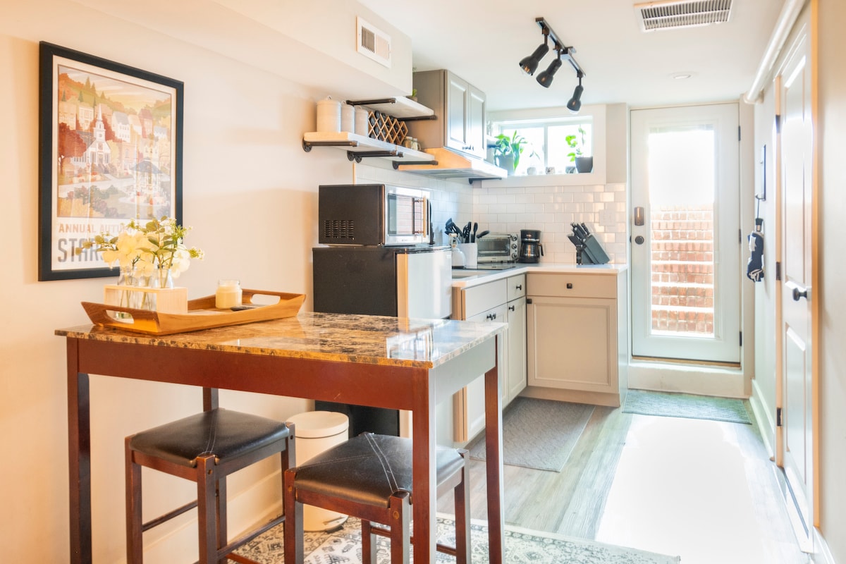 Escape to a cozy, uniquely styled Airbnb in Washington, DC, where limewashed walls & home furnishings create a soft, luxurious, and textured warmth to your stay. Perfect for business travelers, romantic getaways, and urban adventurers, the intimate dining area, and serene bedroom make it easy to feel at home. Located minutes from Navy Yard (NATS & Audi Field) as well as the Wharf, enjoy a peaceful oasis just minutes from DC's top landmarks & vibrant dinning scene.
