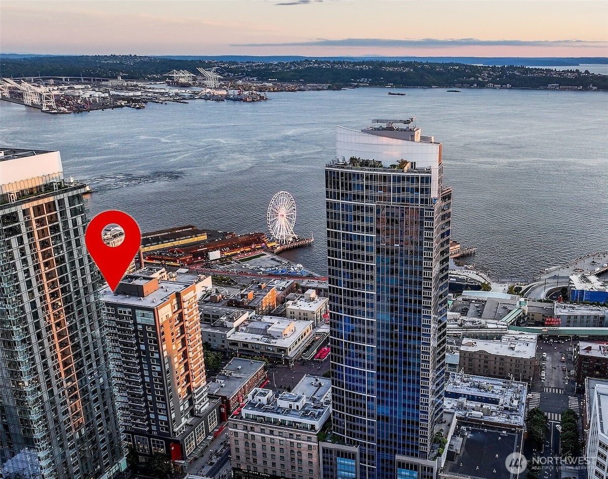 Stay in a rare penthouse in the heart of Downtown Seattle - steps from Pike Place Market and minutes from Lumen Field. This is one of the closest high-end residential stays to the city's World Cup action. Walk to everything - coffee, waterfront, transit, and nightlife - then return to a quiet elevated space above it all. No car needed. Spacious with 11 ft ceilings, floor-to-ceiling windows, full-sized laundry, 24/7 concierge, pool, hot tub, sauna, patio, biz ctr, & fitness ctr w/views!