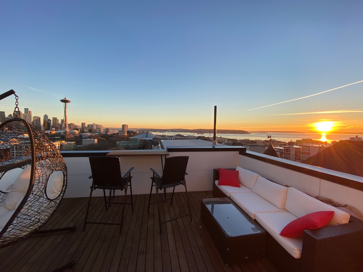 5 mins to City! Rooftop deck views on Queen Anne