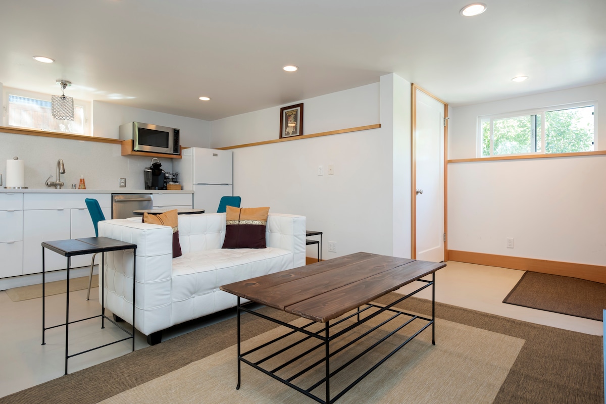 This bright and expansive (700 sq ft!), private loft is a perfect getaway, while still close to great food/drink, and all of Seattle's outstanding adventures. The romantic lounge has an incredibly comfortable bed, fuzzy rug, and cool original art on every wall. The huge plush couch is big enough for two people to stretch out and enjoy Netflix on a flat screen TV, along with the softest blanket. In the morning coffee service is ready for you. We hope you enjoy The Lounge!