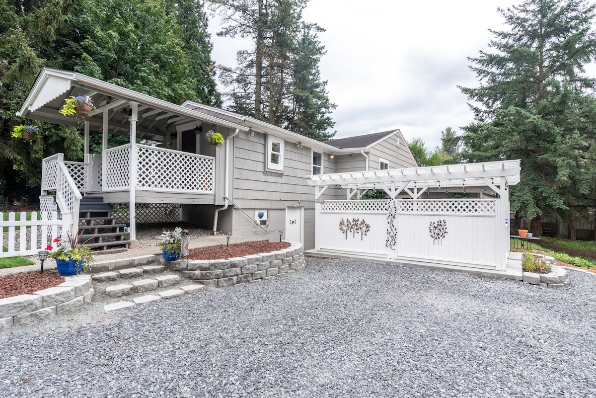 This charming three bedroom one bath house is the perfect getaway for business or pleasure. Enjoy the sparkling clean hot tub overlooking Little Bear Creek. The surroundings are picturesque and private. Rest assured that our home is 100% disinfected between guests, personally, by the owners. Socially Distant / private location with no thru streets. Property is conveniently located off SR 9. Minutes to WA-522 and I-405. 2 Miles N of Downtown Woodinville and 8 Miles S of Snohomish. Pet friendly.