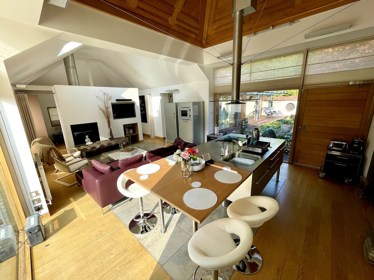 The Beach House, West Wittering Beach. An airy, bright home, shares a garden with the main house, sitting directly on the beach. A perfect getaway, an hour and a half from London. It is self-contained and is close to Goodwood, Chichester Theatre, great bike routes, local pubs and, of course, the sea is on your doorstep. Open-plan fully-equipped new kitchen, big comfortable sofa, TV/Wifi, separate shower room. Super king double bed, plus 2 single beds on large mezzanine floor with a sea view.