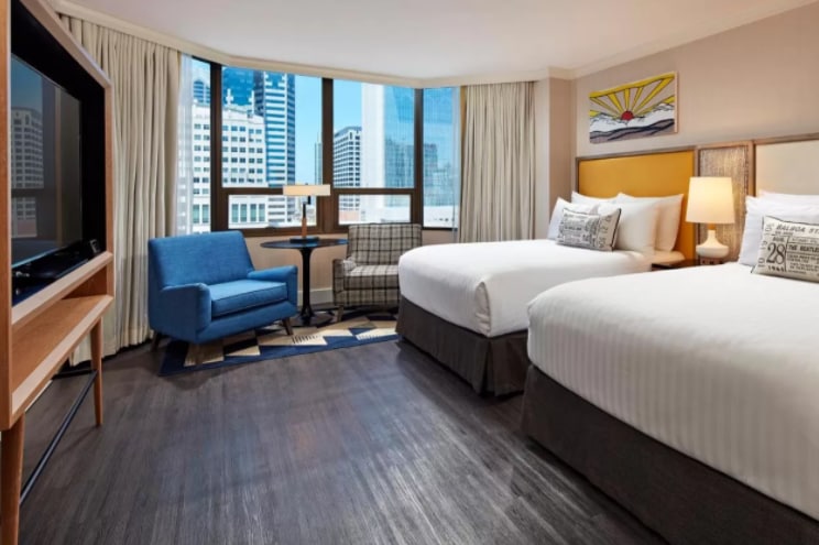 This room features a luxurious king size bed and high speed WiFi for unlimited devices so you can stream your favourite shows on the 43 inch HDTV with ease. Enjoy the naked experience with European style double duvets oversized fluffy towels and luxury linens. Relax in micro fiber bathrobes with French terry lining and indulge in Tommy Bahama bath products. Start your day with a Keurig coffee and complimentary bottled water for a truly refreshing stay.