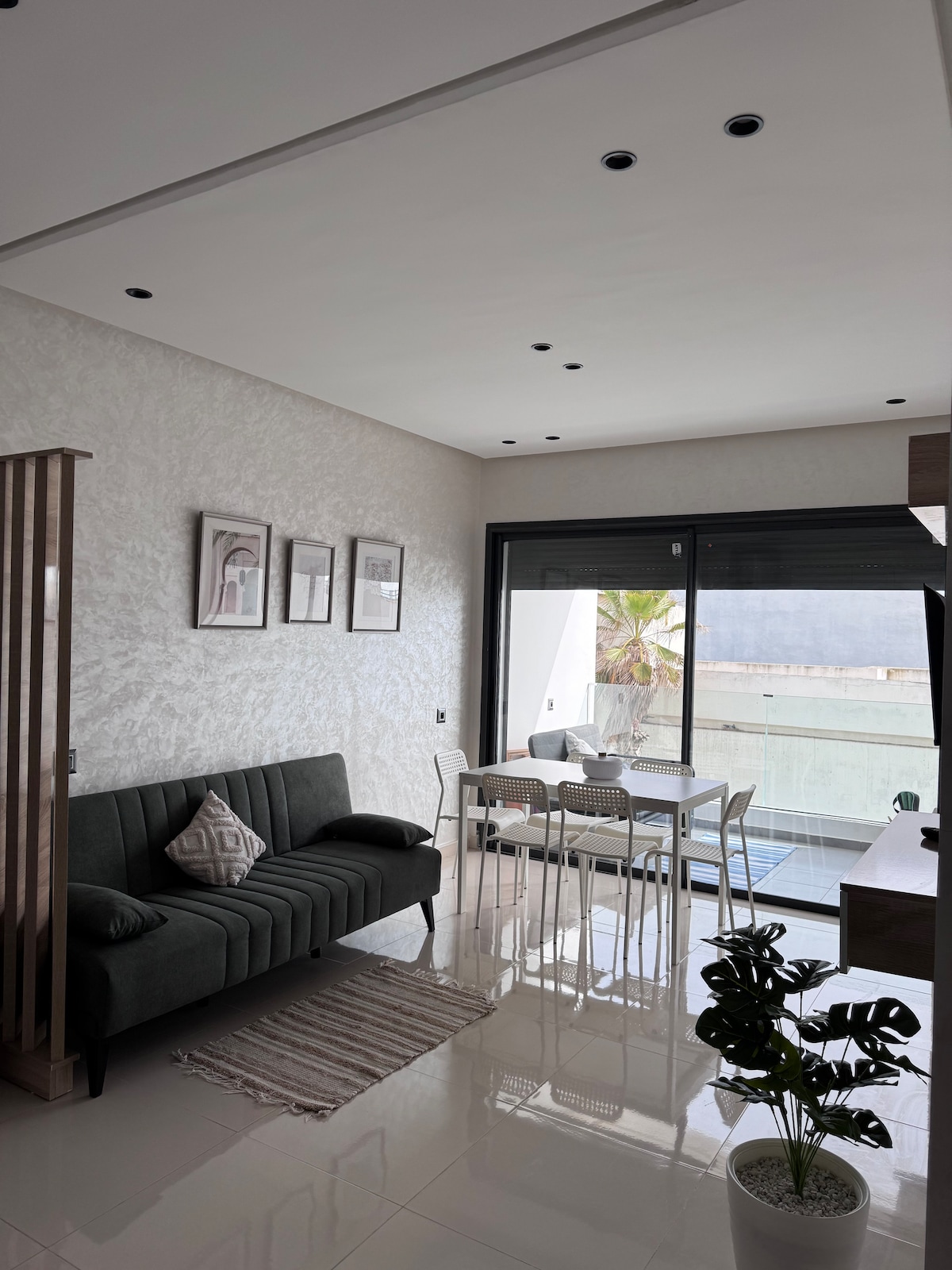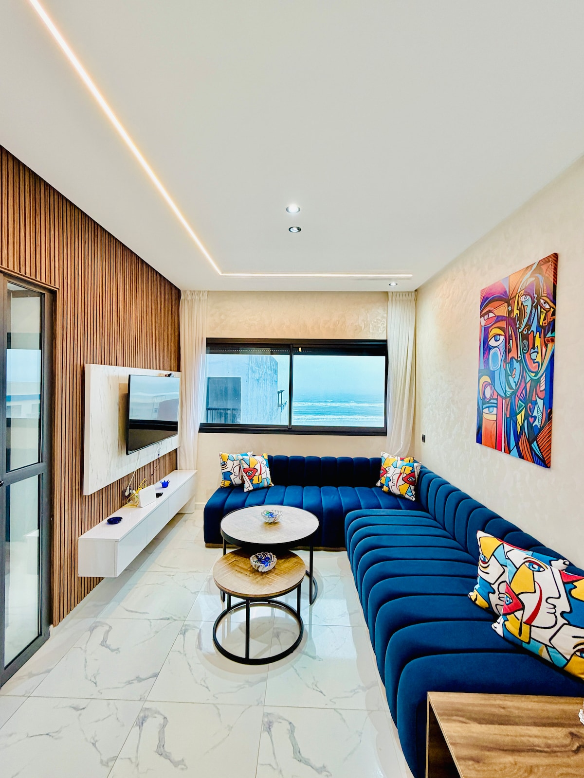 Relax as a couple,with family, with friends in the friendly atmosphere of this beautiful apartment facing the sea, fully equipped, high-tech for your comfort Combining luxurious furniture with unique pieces Elegance, design and prestige,a unique experience located in a luxurious residence, built in 2024 with views of the Mehdia Sea. All hygiene rules are respected. Unmarried couples are not except it.
