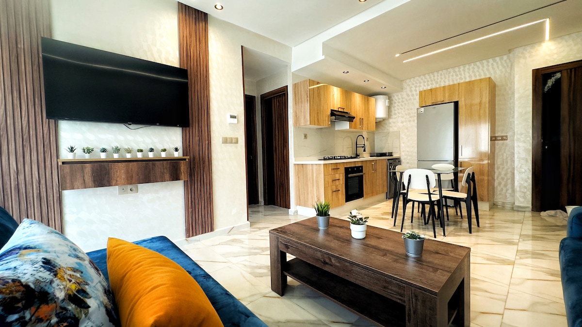 Leave the everyday behind. Here, every detail invites you to slow down and disconnect🌅 Just a short walk from the sand, this bright and modern apartment offers more than a stay, it’s a moment of calm between ocean breeze and soft light. 🛏️ Two spacious bedrooms, three cozy beds ☕ Morning coffee with provided capsules, sunlight pouring through the living room 🚗 Self check-in, free parking, fibre WiFi, A/C and central heating 📺 Three TVs with Netflix & IPTV Mehdia is effortless