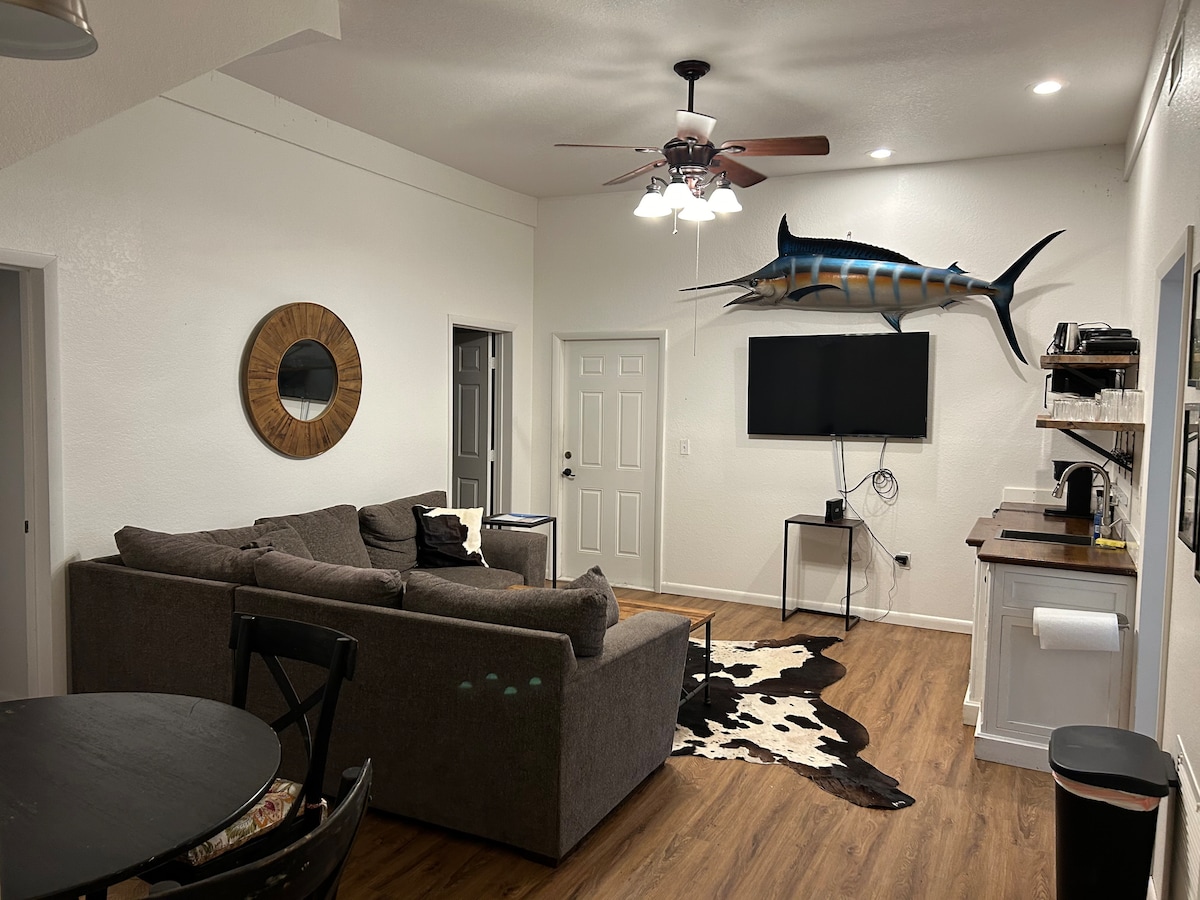 Completely private suite offers a Room with Direct TV and 2 recliners, in the same room Kitchen area has a microwave, refrigerator, sink and garbage disposal. Bedroom has a queen size bed with walk in closet. The Bathroom has a walk in shower 2 shower heads. After purchasing contact us with your ETA within 4 hours of your arrival. Listing says from 2pm-6pm we are flexible must asked in advance we will try to accommodate. Inquire about boat or trailer parking.