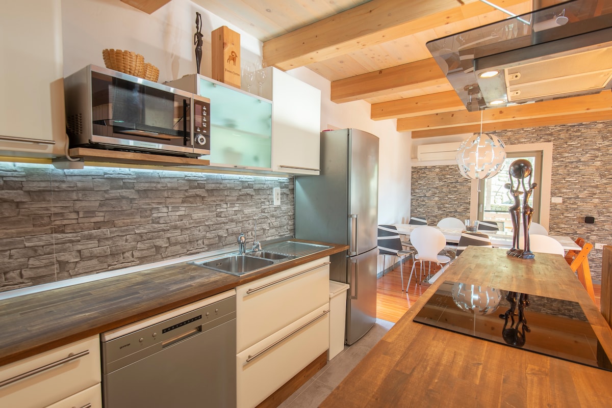 Das Neu erbaute und Modern eingerichtete Haus befindet sich in Kastel nicht weit von der Grenze Slowenien/Kroatien. Die Lage ist ideal für ein Familien Urlaub wo sie eine schöne Zeit verbringen können. Der Pool ist zu ihrer Privaten Nutzung und es sind zwei Parkplaetze verfuegbar. Die Hauptstrasse ist weit weg so das man keinen Laerm hat. Strände sind in kurzer Zeit erreichbar. Viele Restaurants befinden sich in der Umgebung und ein kleiner Markt ist auch wenige Gehminuten entfernt.
