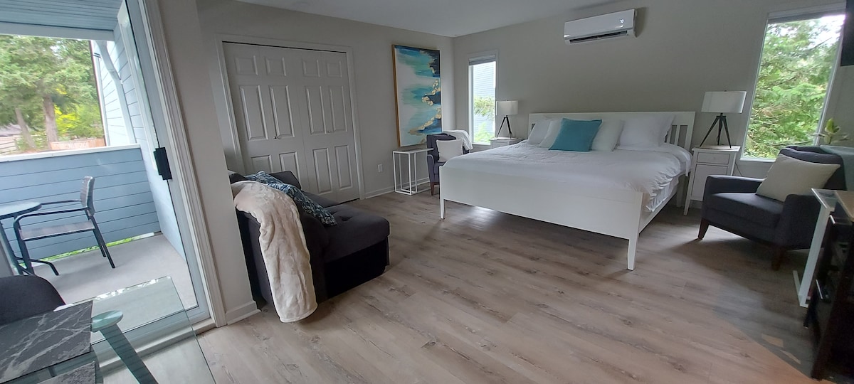 Welcome to this bright new studio suite just two blocks from Davis Bay Beach on the Sunshine Coast, BC. Relax on your private outdoor seating area with a glimpse of the ocean. Modern finishes and a private entrance make it a cozy retreat. Walk to the beach for swimming, sunsets, and cafes, or explore nearby hiking and coastal trails for the full Sunshine Coast experience
