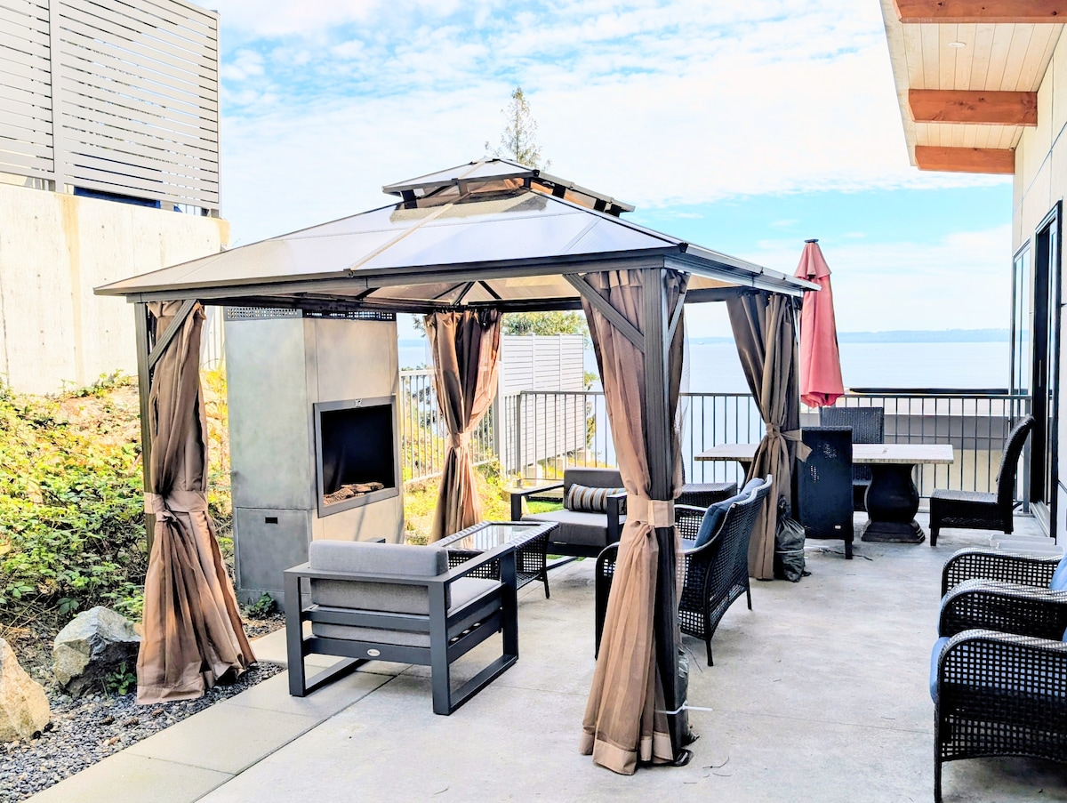 We offer 1165 sqft of air-conditioned space – two queen bedrooms with crisp linens, one beautiful bathroom with tub and walk-in shower, and plenty of space to relax. Modern washer, dryer, fridge, cooker and dishwasher. You’ll have a private covered deck with outdoor seating and dining areas, as well as use of a 6-person hot tub. There are kayaks and a canoe you can use, tide permitting. 50 amp fast EV charger, RV charger.